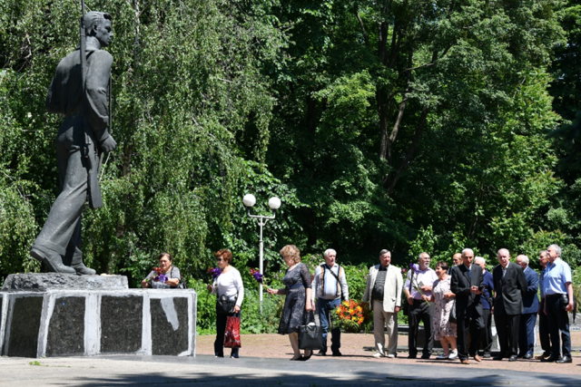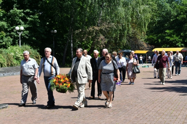 Після завершення переклички учасники ювілейної зустрічі здійснили покладання квітів до пам’ятника викладачам і студентам, які загинули у другій світовій війні та до стилізованої стели у щойно відкритому Сквері пам’яті випускників, студентів, викладачів, співробітників університету, воїнів-героїв, які загинули за свободу і незалежність України у боротьбі проти російських загарбників. Після покладання квітів випускники ознайомилися з новими перлинами Ботсаду, відвідали рідний гуртожиток, здійснили пішу екскурсію рідними місцинами Голосієво, скоштували обідні страви у студентській столові…