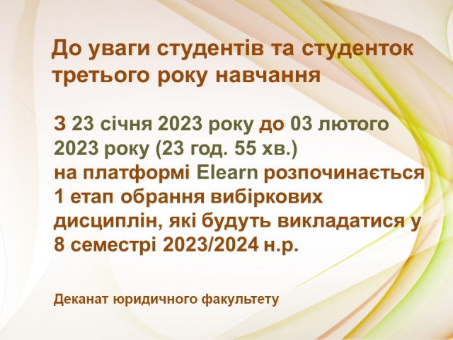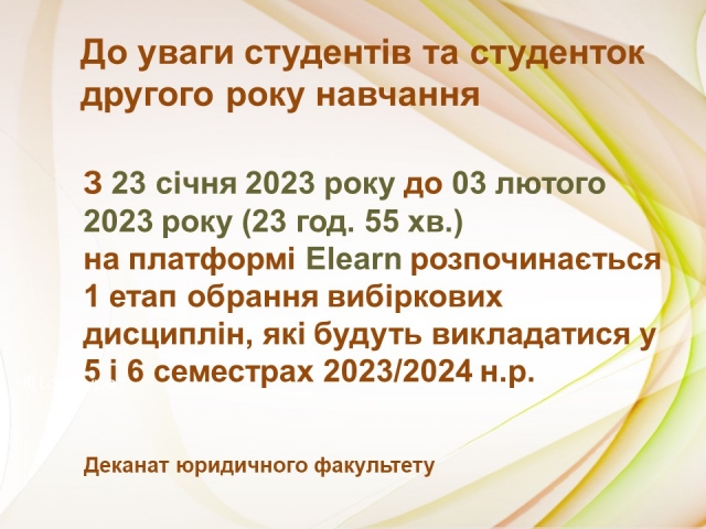 До уваги студентів 2 та 3 курсів: обрання вибіркових дисциплін!