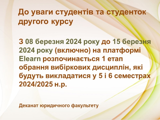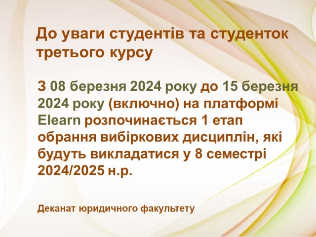 До уваги студентів 2 та 3 курсів: обрання вибіркових дисциплін на 2024/2025 н.р.! Normal 0 false false false EN-US X-NONE X-NONE Форми для вибору - перейти 8 березня 2024 року 02:00 - 02:00
