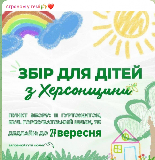 Протягом вересня ССО агробіологічного факультету проводили акцію по збору речей для облаштування творчого простору для дітей деокупованої Херсонщини.