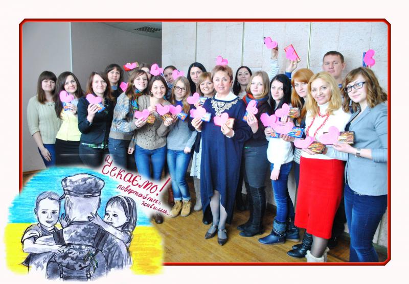 Магістри переробки, зберігання та консервування м'яса на чолі з деканом факультету ХТ та УЯП АПК Баль-Прилипко Ларисою Вацлавівною та викладачем Крижовою Юлією Петрівною передали бійцям АТО шоколад з валентинками в яких було побажання скорішого повернення воїнів додому.