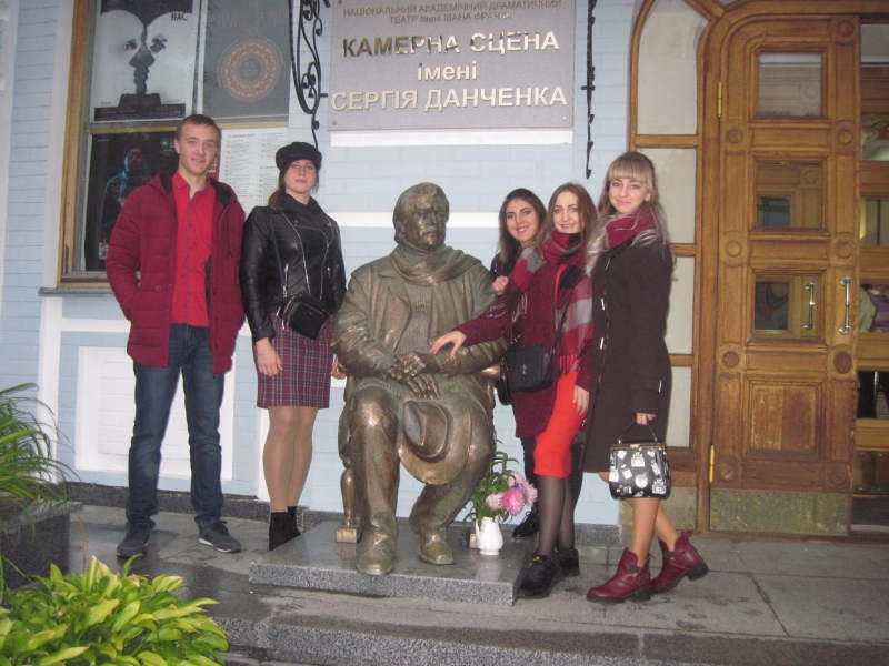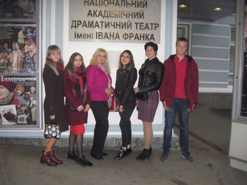 Я, разом з іншими студентами нашого факультету, із задоволенням відвідала виставу у Національному академічному театрі імені Івана Франка. Організували цей захід викладачі кафедри технологій у птахівництві, свинарстві та вівчарстві (куратори Мельник Вікторія Вікторівна, Базиволяк Світлана Михайлівна і Богданова Наталія Василівна). Так як у театрі я побувала вперше, мене приємно вразила споруда самого театру та територія навколо нього. Пощастило сфотографуватися на фоні пам’ятника засновнику театру Гната Юри в ролі Швейка. Зробили ми світлини і біля скульптури одного із головних героїв легендарного художнього комедійного фільму «За двома зайцями» - Миколи Яковченка.