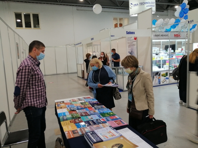 Таран Т.В. і Кос’янчук Н.І. ознайомились також з експонатами виставки щодо фахової літератури, новітніх технологій у лабораторній справі та сучасних дезінфікуючих засобів і засобів особистої гігієни, які використовують у гуманній і ветеринарній медицині.