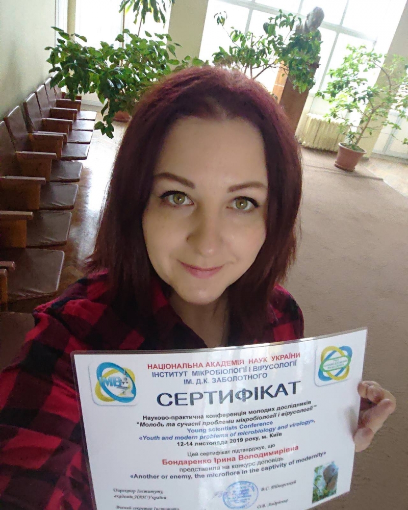 13 листопада 2019 року, згідно програми конференції, Ірина Бондаренко виголосила доповідь «Another or enemy? The microflora in the captivity of modernity» («Друг або ворог? Мікрофлора у полоні сучасності»), де представила результати наукових досліджень студентського наукового гуртка «Сільськогосподарська мікробіологія» (керівник – проф. Яблонська О.В.), викликала шквал запитань і повністю на них відповіла.