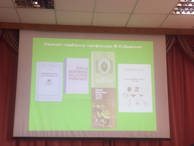 З вітальним словом до учасників конференції звернувся декан факультету захисту рослин, біотехнологій та екології НУБіП України, член –кореспондент НААН, професор Микола Доля, який відмітив особливості підготовки фахівців зі спеціальності « Захист і карантин рослин» і звернув увагу на роль і значення ентомологічних знань для сучасного розвитку сільського господарства. Відзначив вклад наукової школи професора М.П.Дядечка, яка і в теперішній час відіграє важливу роль в новітніх системах захисту рослин. Зокрема, у впровадженні у виробництво біологічного методу захисту рослин. Декан висловив пропозицію щодо залучення випускників шкіл на підготовчі курси і вступу на факультет захисту рослин, біотехнологій та екології НУБіП.