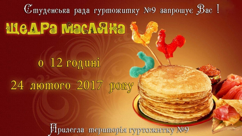 Чекаємо на гостей свята 24 лютого 2017 року о 12:00 біля гуртожитку № 9 за адресою вул. Генерала Родимцева, 1.