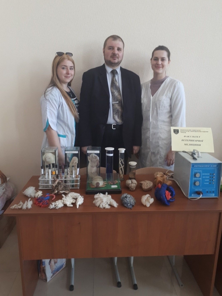 Супровід експонатів здійснювали доцент кафедри анатомії, гістології і патоморфології тварин ім. акад. В. Г. Касьяненка Сердюков Я. К. та студенти-гуртківці, магістранти цієї ж кафедри Якименко Лада та Малиновська Тетяна.