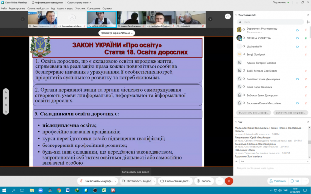 Слухачі потоку «Керівники та спеціалісти Держпродспоживслужби» підвищують кваліфікацію на платформі Webex з використанням корпоративного акаунту НУБіП України, що дає можливість в повному обсязі виконати навчальну програму.
