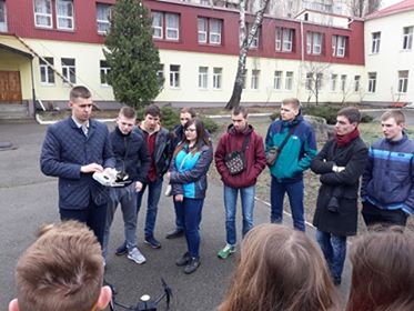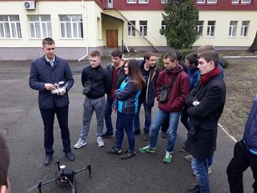 Заступник декана Олександр Шевченко розповів про можливості застосування БПЛА у різних галузях від військової до агропромислового комплексу, та продемонстрував в дії квадрокоптер.
