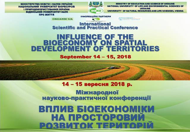 Спільними зусиллями кафедри управління земельними ресурсами та НДІ Економіки і менеджменту НУБіП України 14-15 вересня 2018 року було проведено Міжнародну науково-практичну конференцію «Вплив біоекономіки на просторовий розвиток територій», основним завданням якої стало обговорення актуальних та проблемних питань сучасності.