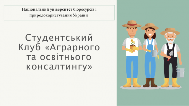 Як угрупування зацікавленого студентства, «Клуб аграрного та освітнього консалтингу» вже має свою історію і з кожним роком згуртовує навколо себе дедалі більше молоді, яка прагне пізнавати нове, цікавиться тим, як побудований та розвивається світ, прагне осягнути вершини майстерності та інтелекту.