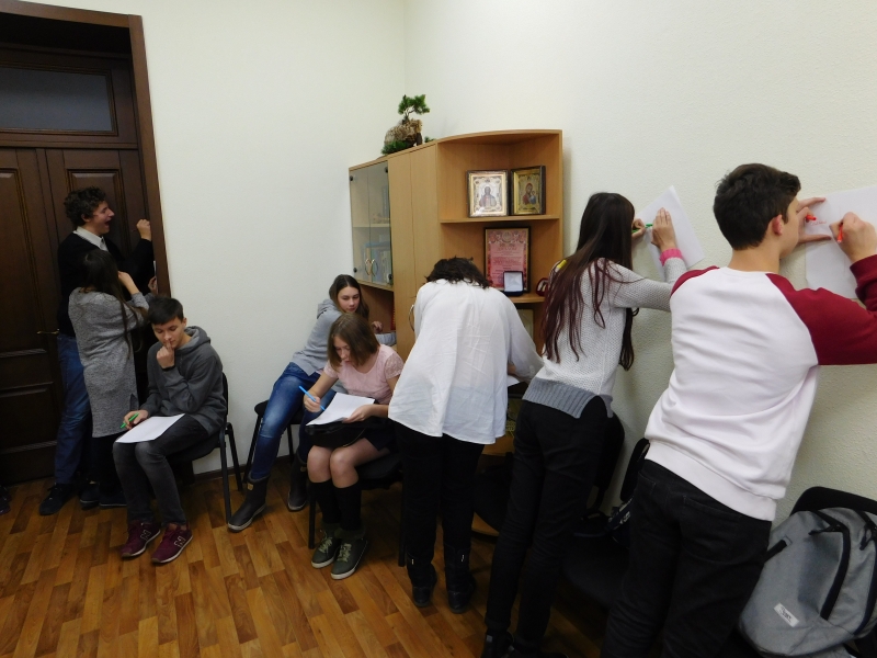 Долучаючись до заходів, які були заплановані представниками кафедри філософії з нагоди святкування Всесвітнього дня філософії, пані Юлія Кравченко люб’язно погодилася провести практичний тренінг, присвячений життю і творчості Г. С. Сковороди, для запрошених у цей святковий, для співробітників кафедри філософії, день. Учасниками тренінгу стали учні випускних класів 151-ї, 116-ї шкіл міста Києва та ліцею «Голосіївський» № 241, які в цей день брали активну участь у заходах кафедри.