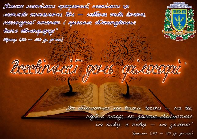 16.11. 2017 року у Всесвітній день філософії та з нагоди офіційного відкриття Сковородинських навчань «Пізнай себе» з метою обміну досвідом кафедру філософії НУБіП України відвідала кандидат філософський наук, методист МАН, міжнародний експерт та тренер з методики «Філософія дітям» пані Юлія Кравченко. У ході зустрічі вона ознайомила представників кафедри із сучасною методикою неформальної освіти «Філософія дітям» та зазначила, що автором цієї методики є її вчитель та наставник, відомий американський філософ освіти, педагог, професор Колумбійського університету, університету Монклер у штаті Нью-Джерсі Метью Ліпман. В основу, зазначила пані Юлія, покладено туди ідеї всієї європейської філософської традиції з метою навчити дітей самостійно та креативно мислити.