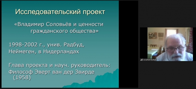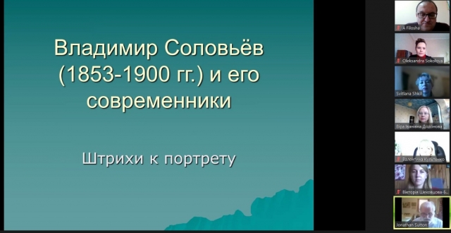 8 жовтня 2021 року відбулася лекція професора Університету Лідса (University of Leeds, Велика Британія), доктора Джонатана Саттона, на тему «Філософ Володимир Соловйов та його сучасники» .