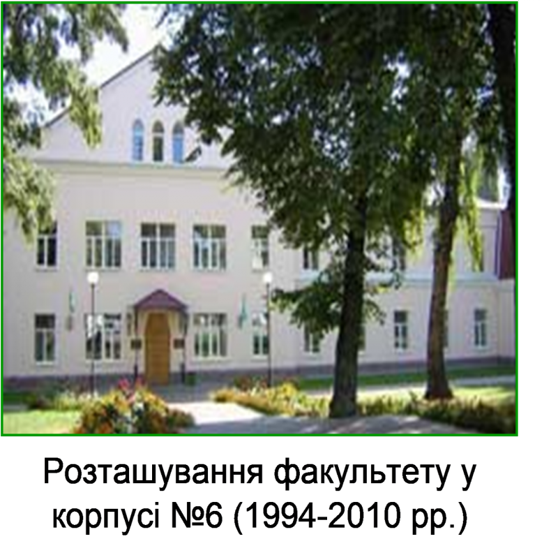 У перше десятиліття існування факультету була створена потужна навчально-матеріальна база: лабораторії, спеціально обладнані аудиторії та кабінети. В процесі навчання використовувалися також лабораторії науково-дослідних інститутів педагогіки та психології Міністерства освіти УРСР, павільйони Виставки передового досвіду в народному господарстві Української РСР. Базою педагогічної практики слухачів факультету були 35 сільськогосподарських технікумів республіки.