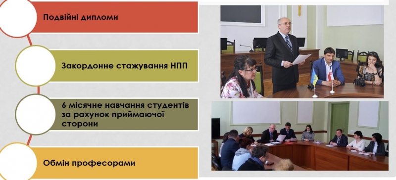 На факультеті діє програма закордонного безкоштовного стажування у Поморській академії в Слупську (Республіка Польща) для студентів і науково-педагогічних працівників, а також спільний українсько-польський проект подвійних дипломів, за яким студенти отримують державні дипломи українського та європейського зразків.