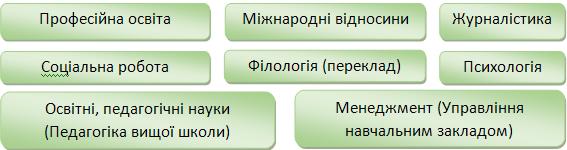 Підготовка фахівців здійснюється за такими спеціальностями: