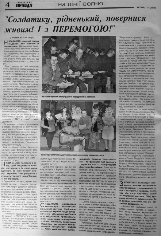 Саме такі слова вдячності студентам і викладачам факультету ветеринарної медицини від командира Полтавської військової частини Національної гвардії України були розміщені у першому номері газети "Запорізька правда" від 14 сіня 2016 року.