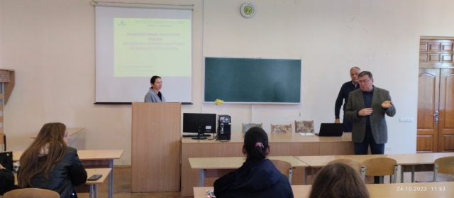 Наведена інформація викликала інтерес у здобувачів і цікаву дискусію. Тетяна Іванівна дала вичерпні відповіді на запитання. Вона відмітила що студенти мають можливість пройти стажування на базі лабораторії «Нематології», у якій створені усі умови для формування хорошого спеціаліста із захисту рослин.