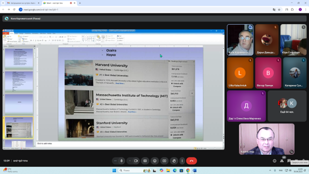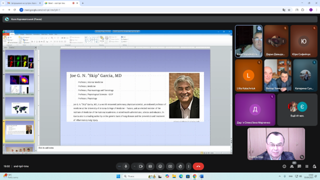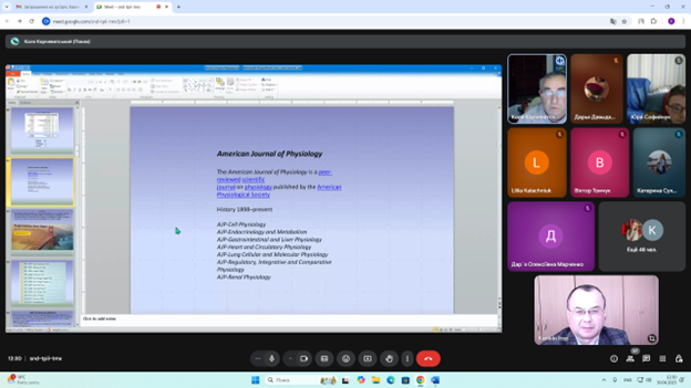 На кафедрі біохімії імені академіка М.Ф. Гулого відбулась гостьова лекція в онлайн форматі для студентів 2 курсу ОС Магістр спеціальності «Ветеринарна медицина» і викладачів кафедри та факультету ветеринарної медицини. Запрошений гість факультету ветеринарної медицини Національного університету біоресурсів і природокористування України - Peter V. Usatyuk, професор, який працював в Johns Hopkins University, University of Chicago, University of Illinois (США). Тема гостьової лекції – «Освіта, наука, медицина в США». З вступним словом до учасників лекції звернувся завідувач кафедри Віктор Томчук, відмітивши, що проведення подібних заходів є особливо актуальним, оскільки потрібно максимально наблизити підготовку фахівців до вимог ринку праці та запропонувати роботодавцям кваліфікованих і перспективних фахівців.