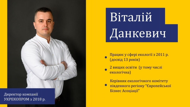 Спікер: Віталій Данкевич, керівник компанії ТОВ «НВК «УкрЕкоПром», яка надає широкий комплекс послуг у сфері поводження з відходами та екологічного обслуговування підприємств в Одесі та по всій території України.