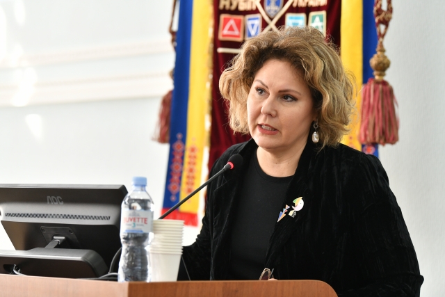 У своїй доповіді доцент кафедри правосуддя та філософії Сумського національного аграрного університету Анжеліка Шевель розповіла про внесок жінок родини Харитоненків у розвиток жіночого лідерства та самопрезентації українського суспільства середини ХІХ – початку ХХ ст.