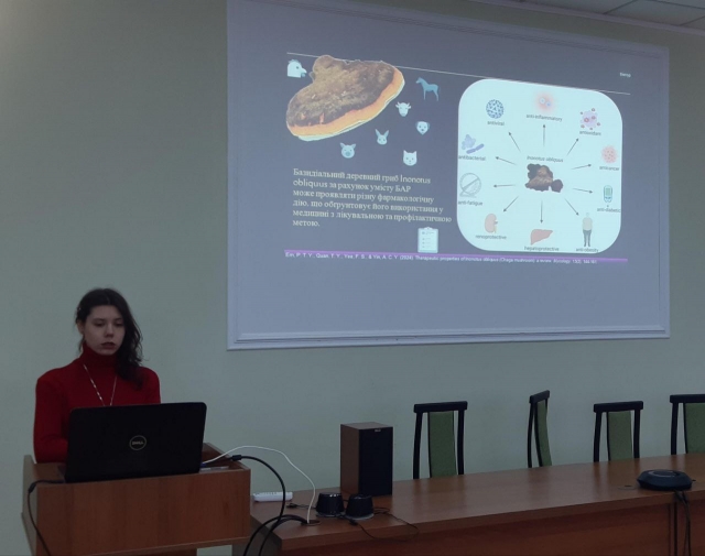 - Визначення параметрів гострої токсичності екстракту базидіального деревного гриба INONOTUS OBLIQUUS (доповідач: Клименко Софія Валеріївна (5 курс, 5 група), науковий керівник: Деркач Ірина Михайлівна, доктор ветеринарних наук, професор. Науковий гурток: Ветеринарна фармакологія і фармація);