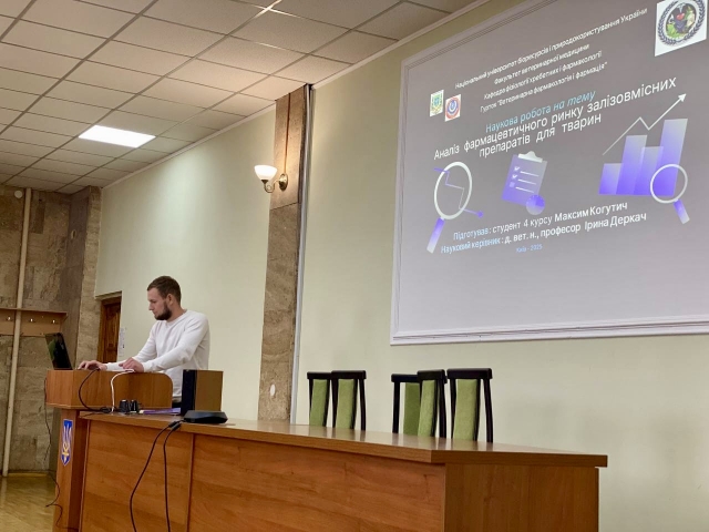 - Аналіз фармацевтичного ринку залізовмісних препаратів для тварин (доповідач: Когутич Максим Юрійович, (4 курс, 9 група), науковий керівник: Деркач Ірина Михайлівна, доктор ветеринарних наук, професор. Науковий гурток: Ветеринарна фармакологія і фармація).