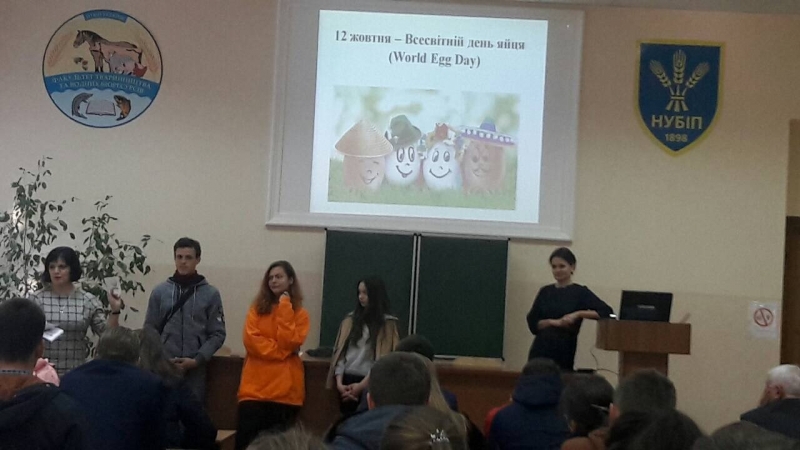Святкування відбулося і на факультеті тваринництва та водних біоресурсів. 12 жовтня – саме в цей день у цьому році у всьому світі відмічають World Egg Day – студенти мали можливість і пізнати багато нового про цей продукт, і весело відсвяткувати. Всі присутні ознайомились зі станом виробництва харчових яєць в Україні і світі, національними особливостями споживання яєць та приготування різноманітних страв, застосуванням яєць у харчовій, фармацевтичній промисловості, медицині, косметології тощо, а також використанням символу яйця у мистецтві, архітектурі і народній творчості, а також відвідати (віртуально) сучасне підприємство з виробництва харчових яєць.