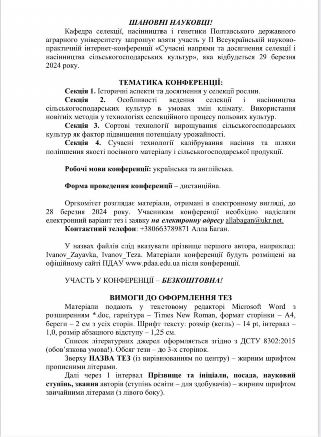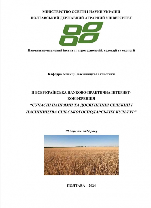 ІІ Всеукраїнська науково-практична інтернет-конференція "Сучасні напрями та досягнення селекції і насінництва сільськогосподарських культур" 18 лютого 2024 року 02:00 - 02:00