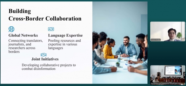 Науковий діалог продовжив доцент факультету міжнародних досліджень в Університеті Мейо (Окінава, Японія) Енг Хей Тан з доповіддю «Чути невисловлене: як культурні припущення формують міжкультурну комунікацію», яка захопила присутніх позитивною елегантністю наукової думки та її презентації. Доповідач почав із парадоксу міжкультурної комунікації, який полягає в тому, що коли ми більше спілкуємося, ми менше розуміємо, зауваживши, що культурні відмінності стосуються не лише мови, а й глибоко вкорінених, несвідомих структур, які формують те, як ми сприймаємо реальність. Культурні припущення діють як невидимі сценарії, повторюючи закономірності в індивідуальних свідомостях, соціальній поведінці та інституційних нормах. Зі зростанням глобалізації, підсумував Енг Хей Тан, невисловлене стає не просто інтелектуальним прагненням, а моральним імперативом, який вимагає усвідомленості, адаптивності та допитливості.