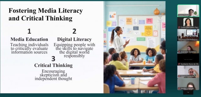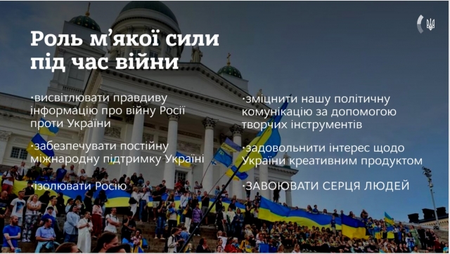 Заступниця директора Департаменту публічної дипломатії та комунікацій МЗС України Ірина Шум розповіла про цілі та завдання публічної дипломатії в Україні, докладно розкрила перспективи їх реалізації за різними напрямами, зокрема в культурній, цифровій, кулінарній, експертній, економічній, науково-освітній і спортивній сфері для просування національних інтересів, збереження та промоції української ідентичності, забезпечення підтримки України у світі.