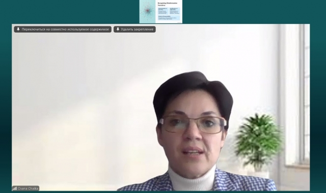 Другу частину конференції відкрила доктор педагогічних наук, доцент кафедри іноземної філології і перекладу НУБіП України (Київ, Україна) / Люксембурзький Університет (Еш-сюр-Альзетт, Люксембург) Оксана Чайка з доповіддю на тему: «Протидія російській пропаганді за допомогою перекладу», адже переклад, який традиційно розглядався як простий акт мовного перенесення, сьогодні відіграє ключову роль у глобальній геополітиці, слугуючи одночасно і мостом, і полем битви ідеологій. Дослідивши роль перекладу в протидії російській пропаганді, Оксана Чайка схарактеризувала її як вирішальну та складну; закцентувала, що перекладачі можуть відігравати активну роль у протистоянні ідеологічним маніпуляціям і збереженні правди завдяки критичному аналізу, етичному прийняттю рішень і застосуванню інноваційних перекладацьких стратегій, а завдяки точним, контекстуально чутливим перекладам – допомогти захистити цілісність демократичного дискурсу та зробити свій внесок у боротьбу з пропагандою у світовому масштабі.