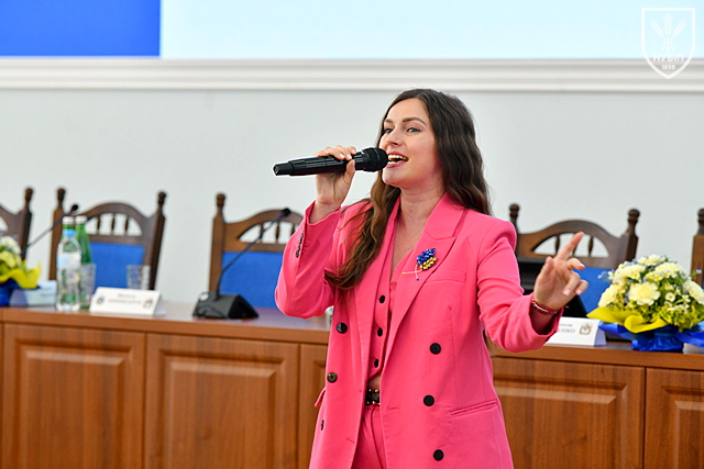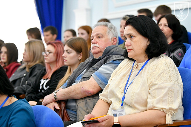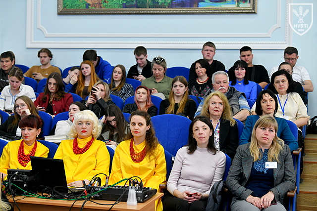 Декан гуманітарно-педагогічного факультету НУБІП України Інна Савицька завершила вітальну частину побажаннями успішної роботи, нових ідей, цікавої та результативної наукової комунікації всім учасникам конференції.
