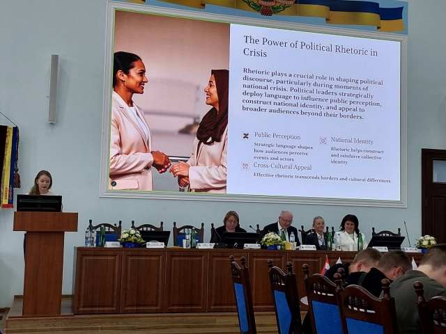 Юлія Кравченко («The rhetorical and semantic shifts in Zelenskyy’s address to russian citizens (February 24, 2022»), Владислава Юрченко («Ukraine’s image in the context of cultural diplomacy: the role of intercultural communication»).