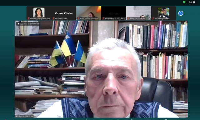 На необхідності усвідомлення історичних фактів наголосив у своєму виступі і доктор політичних наук, професор, голова Наглядової ради НУБІП України Микола Томенко, який розкрив проблему деміфологізації наративів російської пропаганди про «історію України» для міжнародного співтовариства, детально зупинившись на трьох аспектах: від формування імперсько-радянсько-російської версії «історії України» через розвінчування головних міфів імперсько-радянсько-російської пропаганди щодо «історії України» (походження назви України, переяславської легенди тощо) до кроків державної політики України в контексті просування популярної версії «історії України» у світі (доповідь побудовано за результатами спільного дослідження з В. Пироговською).