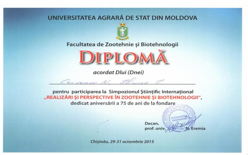 Співробітники кафедри взяли активну участь у проведенні Міжнародної науково-практичної конференції, яка проходила 29-31 жовтня на базі факультету зоотехнії та біотехнологій Аграрного університету Молдови та Міжнародного аграрно-технологічного форуму, який проводився 27 жовтня цього року у рамках Міжнародної виставки інноваційного агровиробництва та комплексного розвитку аграрного бізнесу «ІнтерАгро комплекс».