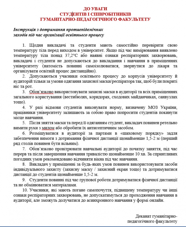 Інструкція з дотримання протиепідемічних заходів під час організації освітнього процесу 31 грудня 2021 року 02:00 - 02:00