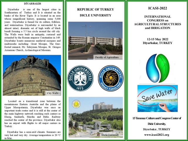 International Agricultural Structures and Irrigation Congress and Workshop, 12-15 May 2022, Diyarbakir, Turkey