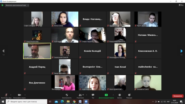 21 грудня 2020 року науково-педагогічними працівниками кафедри екобіотехнології та біорізноманіття професором М. Лісовим та доцентом О. Лобовою відбулося підведення підсумків (екзамен) навчання он-лайн студентів-бакалаврів біотехнологів 3-го курсу (1 і 2 (англ.) групи) з навчальної дисципліни “Біобезпека біотехнологій”.