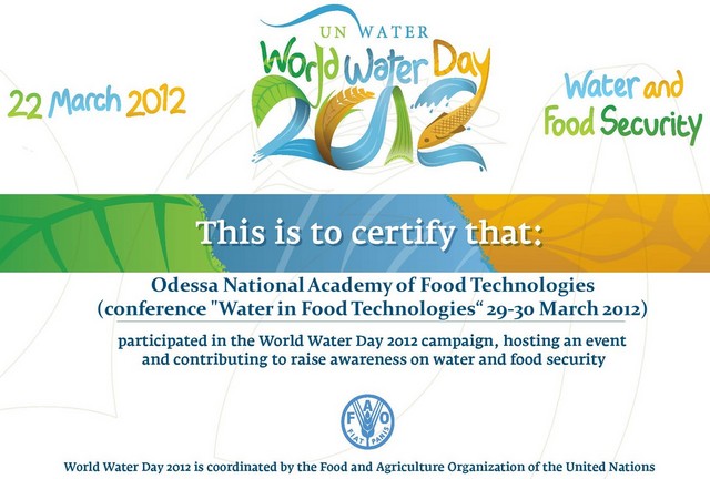 IV Всеукраинская научно-практическая конференция молодых ученых, аспирантов и студентов ВОДА В ПИЩЕВОЙ ПРОМЫШЛЕННОСТИ