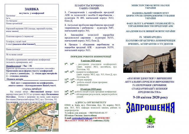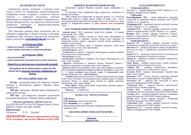 IX МІЖНАРОДНА НАУКОВО-ПРАКТИЧНА КОНФЕРЕНЦІЯ ВЧЕНИХ, АСПІРАНТІВ І СТУДЕНТІВ «НАУКОВІ ЗДОБУТКИ У ВИРІШЕННІ АКТУАЛЬНИХ ПРОБЛЕМ ВИРОБНИЦТВА ТА ПЕРЕРОБКИ СИРОВИНИ, СТАНДАРТИЗАЦІЇ І БЕЗПЕКИ ПРОДОВОЛЬСТВА»