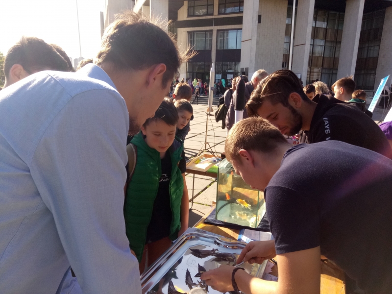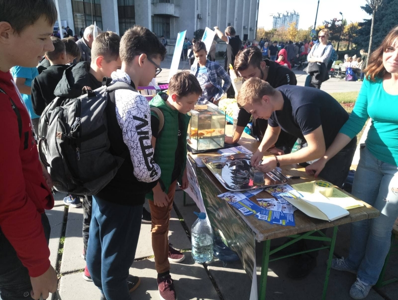 Так, викладачі кафедри аквакультури Дмитро Шарило та Алевтина Базаєва під час фестивалю провели майстер-клас з препарування та дослідження внутрішньої будови риб, що дозволило ознайомити школярів із особливостями навчання студентів за спеціальністю «Водні біоресурси та аквакультура». Школярі різного віку та їх вчителі з цікавістю спостерігали за процесом та задавали низку запитань. Крім того, учнів зацікавила перспектива відвідування літньої біологічної школи у 2020 р. і можливість навчатися на факультеті тваринництва та водних біоресурсів НУБіП України. Для подальшого спілкування та зв’язку викладачі кафедри і школярі обмінялися своїми координатами.