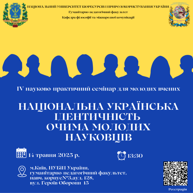 Кафедра філософії та міжнародної комунікації НУБІП України запрошує взяти участь у IV науково-практичному семінарі «Національна українська ідентичність очима молодих науковців»