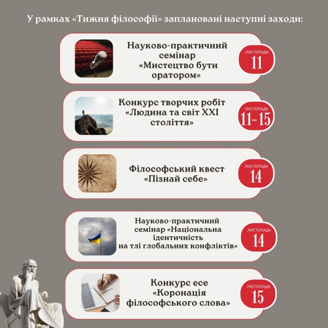 У рамках «Тижня філософії» заплановані наступні заходи: