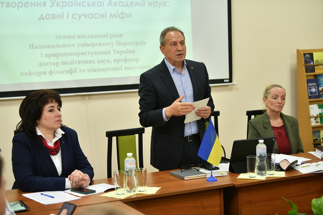 Роботу науково-практичного семінару, який відбувся в очному форматі, розпочав ініціатор та модератор заходу, голова Наглядової ради НУБіП України, професор кафедри філософії та міжнародної комунікації Микола Томенко. Він виступив з доповіддю «Створення Української Академії наук: давні і сучасні міфи», в якій зазначив, що українські історики неоднозначно оцінюють роль гетьмана Скоропадського в історії України. Одні вказують на порівняно стабільне життя України з квітня по грудень 1918 року, нормалізацію економіки, запуск українських шкіл, театру, університетів та академії наук. Інші критикують його політику, те, що влада гетьмана частково трималась на окупаційних військах Німеччини та Австро-Угорщини. Тож завдання сучасних науковців: істориків, політологів, правознавців, філософів, культурологів полягає не лише в популяризації постаті Павла Скоропадського, але й в розвінчуванні міфів, з якими його пов’язують.