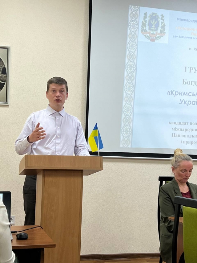 Доцент кафедри міжнародних відносин і суспільних наук Богдан Грушецький в доповіді «Кримське питання» в політиці України (1917-1918 рр.) розкрив особливості вирішення кримської проблеми у діяльності українських урядів 1917-1918 рр. Як він відзначив, протягом кінця 1917 – початку 1918 рр. політика щодо Кримського півострова зазнала кардинальної трансформації – від підтримки ідеї розвитку окремої від України кримськотатарської автономії до реалізації стратегії включення Криму до складу України. Уряд гетьманської доби продовжив цей курс, активно застосовуючи економічні та дипломатичні методи. На жаль, реалізувати цей документ на практиці тоді не вдалося через загрозливі зовнішньо- та внутрішньополітичні обставини, а Крим повернувся до складу України вже у 1954 р.