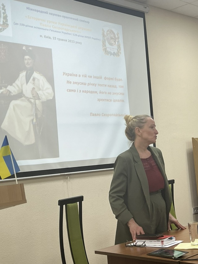 До 150-річчя останнього Гетьмана України і 125-річчя НУБіП України, ураховуючи важливе значення особистості Павла Скоропадського та історичних уроків розбудови Української держави, формування у молодих науковців: учнів, студентів та аспірантів, національно-культурних ідей, виховання молодого покоління на основі цінностей україноцентризму та духу патріотизму, на базі кафедри філософії та міжнародної комунікації гуманітарно-педагогічного факультету НУБІП України відбувся Міжнародний науково-практичний семінар «Історичні уроки Української держави Павла Скоропадського» для популяризації постаті видатного українського державного, військового, політичного і громадського діяча.