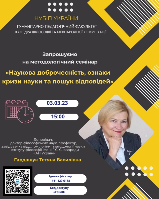 Кафедра філософії та міжнародної комунікації запрошує на методологічний семінар «Наукова доброчесність, ознаки кризи науки та пошук відповідей»