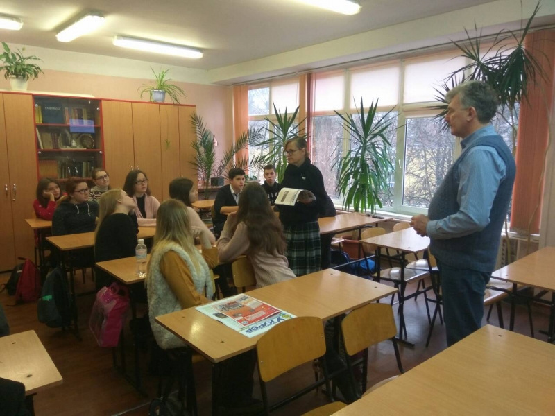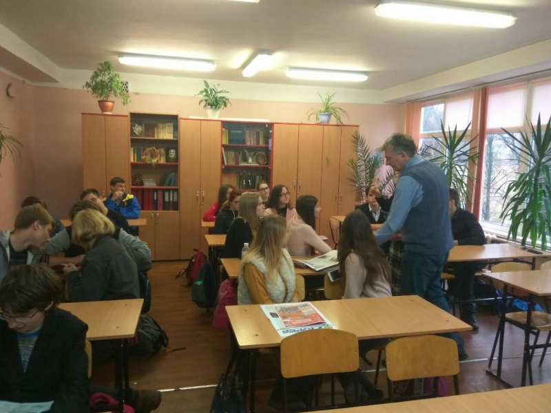 Цього разу із майбутніми студентами ВЗО зустрівся доцент кафедри гігієни тварин та санітарії ім. проф. А.К. Скороходька Поляковський В.М. Зустріч відбулася із учнями 11 класу спеціалізованої школи №220 з поглибленим вивченням іноземних мов, що в Голосіївському районі, м. Києва.